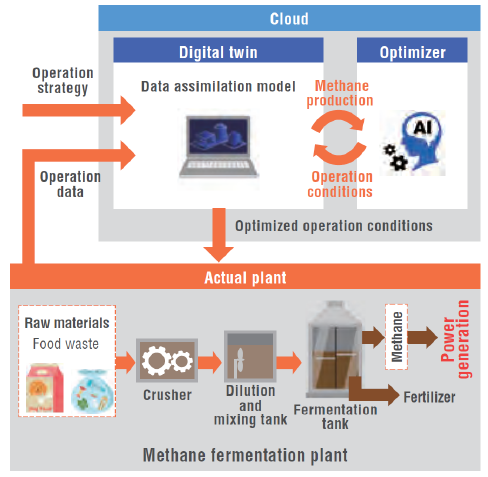 the chemical processes of methane fermentation with plant operation data to make adjustments as necessary to