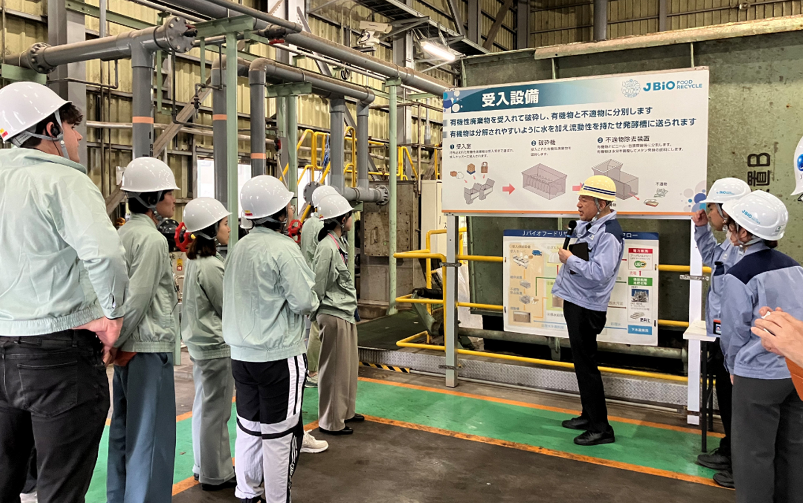 その後、食品廃棄物を利用してバイオガス発電を行っている、当社グループ会社の(株)Jバイオフードリサイクル横浜工場の視察を見学しました。※(株)Jバイオフードリサイクルの詳細はこちら>