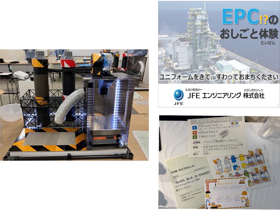 子どもたちに人気のスライムを題材に、当社の中核事業であるEPC(Engineering:設計、Procurement:調達、Construction:建設)の仕事を体験するプログラムです。