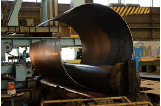 水道用鋼管の一貫製造ラインを備えた鶴見製作所
