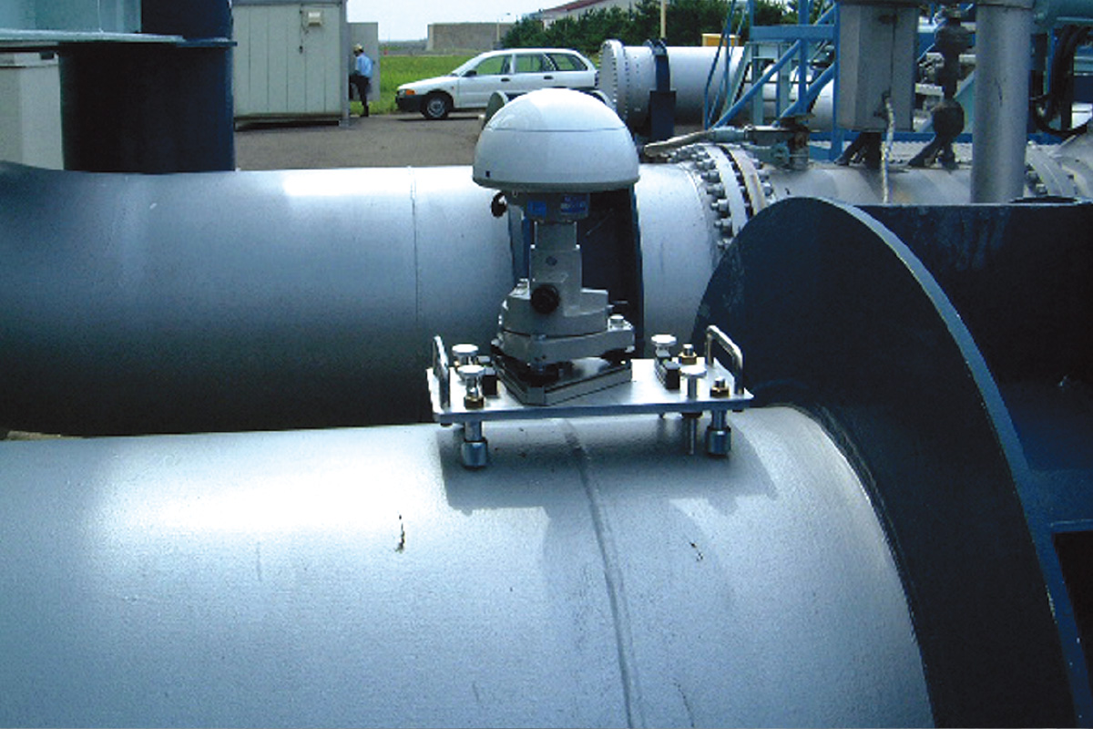 - ジャイロピグをパイプライン内に走行させてジャイロデータを取得します。また、ピグランチャ・レシーバおよびパイプライン途中の特定点の位置をGPSで計測し、各位置の緯度・経度・高度を計測します。ジャイロデータとGPSの計測結果の位置を一致させ、パイプライン全線の3次元位置を求めます。